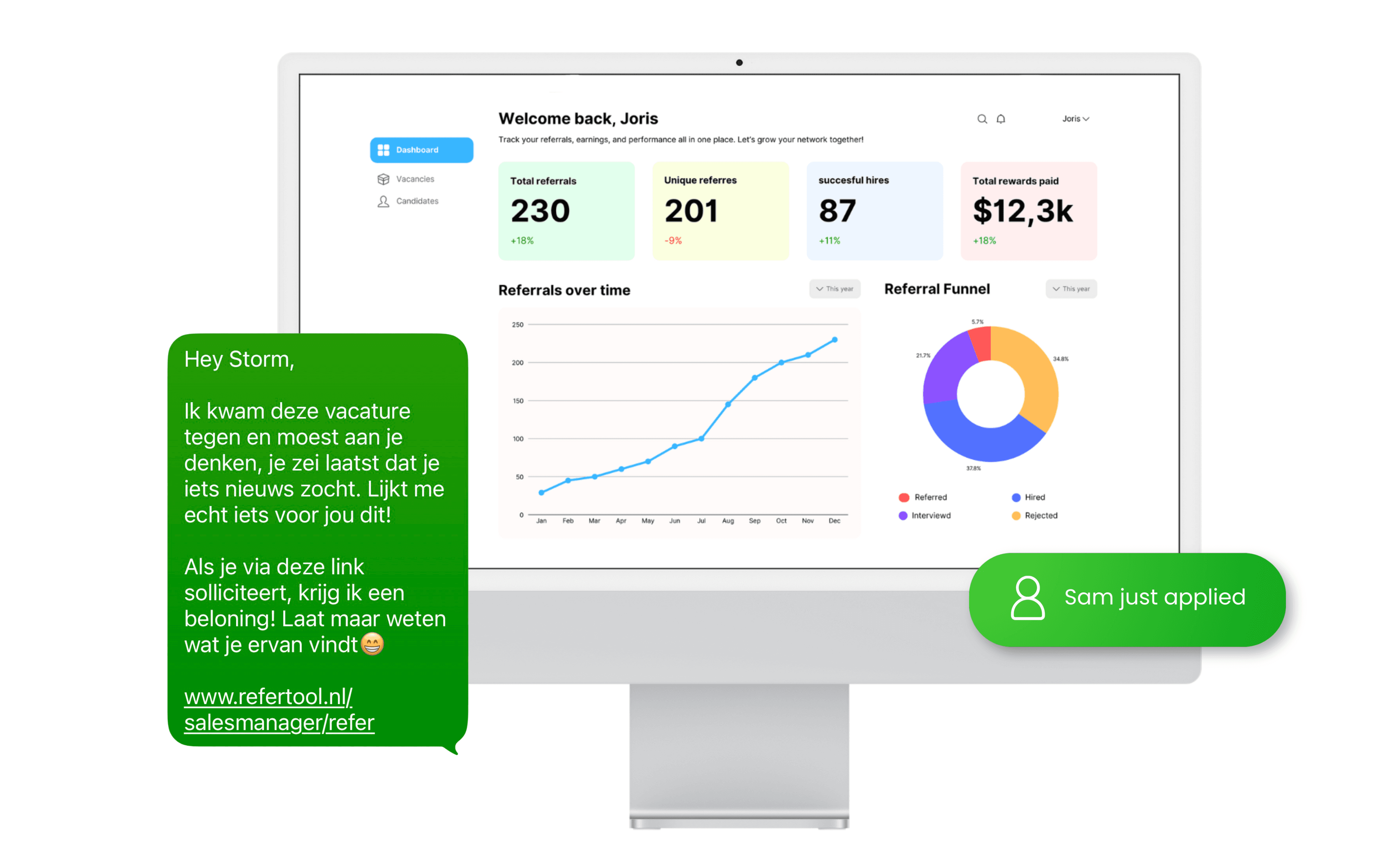 Het beste talent vind je via je eigen netwerk. Refer maakt het makkelijk om dat netwerk voor je te laten werken — een constante stroom aan topkandidaten, zonder extra moeite.
